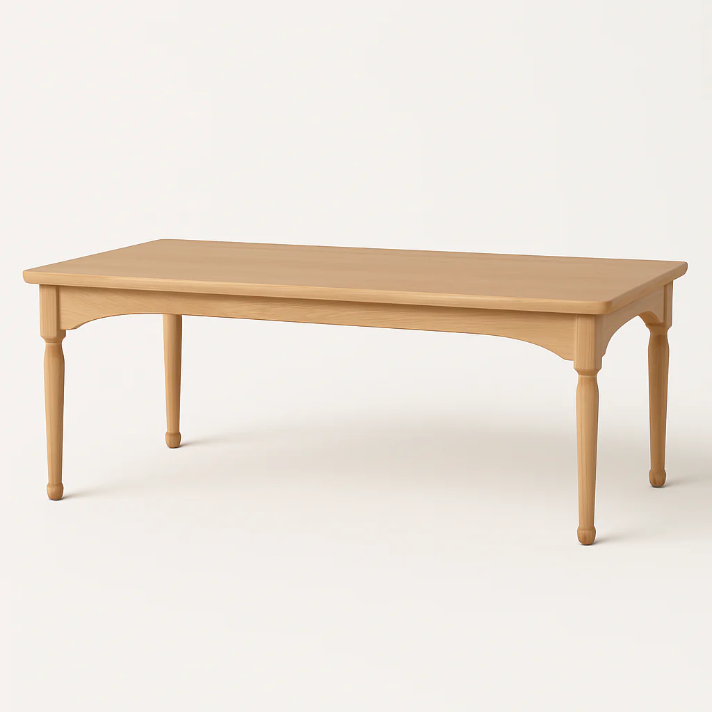 Solane is inspired by vintage European forms, updated for the modern home. The table features turned and tapered legs, elegant corner curves, and an apron with softly arched detailing — bringing a refined silhouette that feels airy yet grounded. Its generous surface is ideal for gatherings or display.